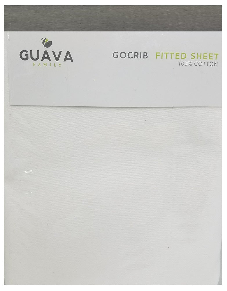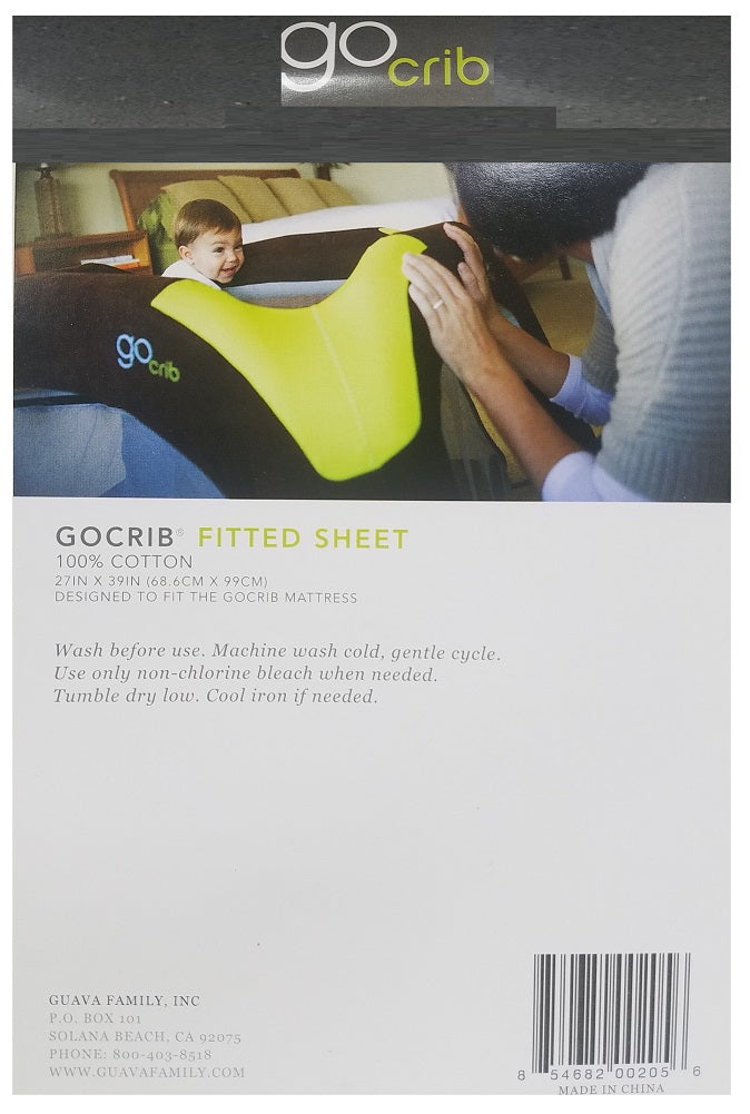 The Guava Family GoCrib Fitted Sheet 100% Cotton is specifically designed to fit the GoCrib mattress. The fitted baby bedding sheet uses a soft, 100% soft cotton twill fabric and is machine washable. Dimensions: 39" L x 27" W x 2" H.