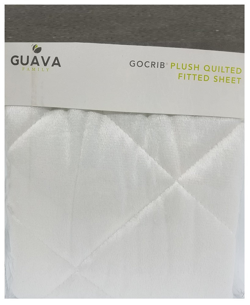 The Guava Family GoCrib Plush Quilted Fitted Sheet 27" x 39" has a soft, quilted velour surface is 100% polyester, and is designed to specifically fit the GoCrib Mattress. We just wish we could have a plush crib sheet this soft for our own beds too! The plush baby bedding sheet is machine washable. Fits with elastic design and proprietary...