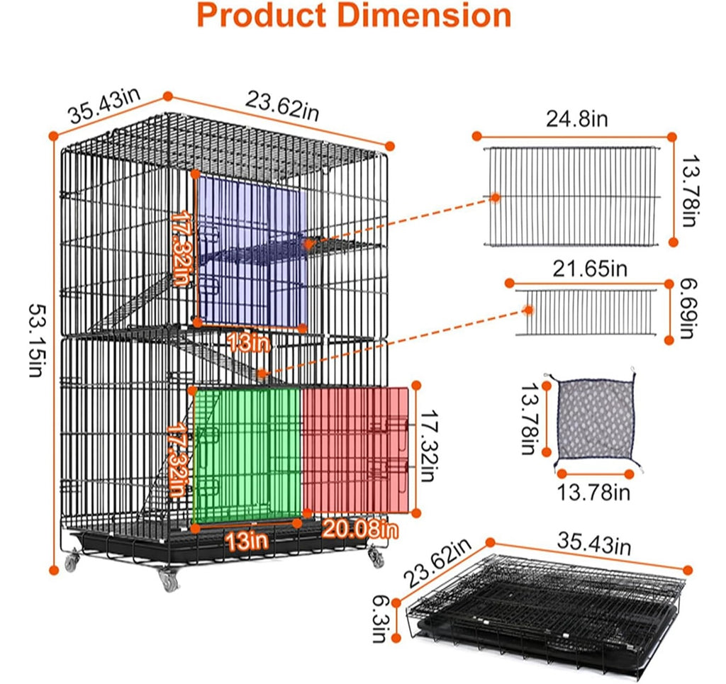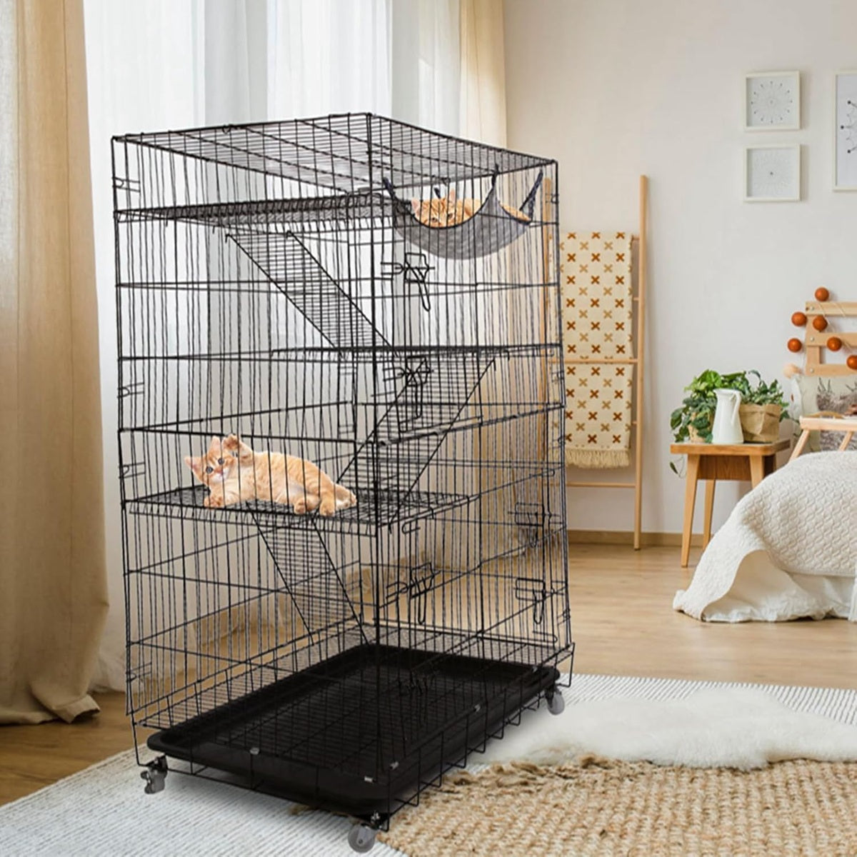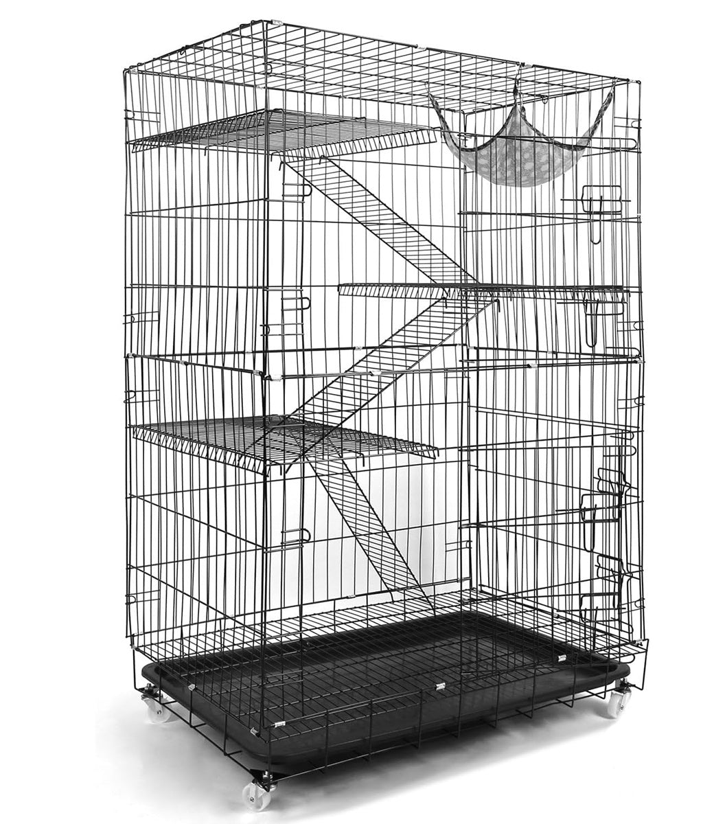 The iMounTEK 4-Tier DIY Metal Cat Cage Playpen Enclosure Black is designed with 4 tiers, 3 ladders and 1 hammock in the cage playpen, offering your cats a cozy space for relaxation and playing. Not only for cats but also for other small animals like guinea pigs, ferrets, rabbits, and so on. Equipped with 4-pieces 360° rolling wheels on the...