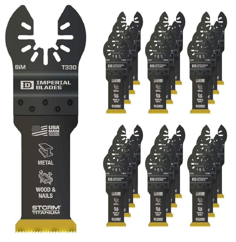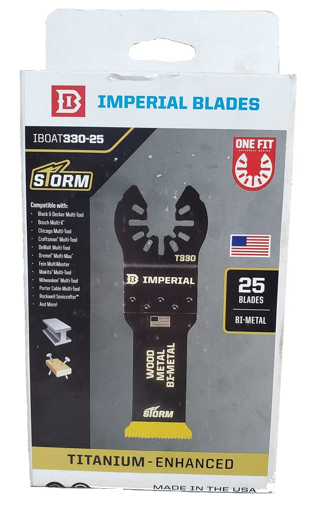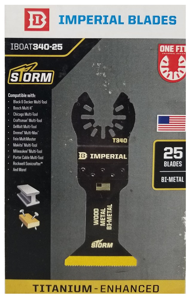 The industry-leading, titanium coated Bi-Metal STORM blade in our line of premium blades is designed for wood, metal and PVC. The highest quality titanium-coated, high speed steel blade is specifically designed for all-purpose applications. Popular uses for this blade: Cutting through nail-laden wood, deck screws, sheet metal, etc. Product Details Imperial Blades One Fit 1-3/4 in. Universal Bi-Metal Storm Blade...