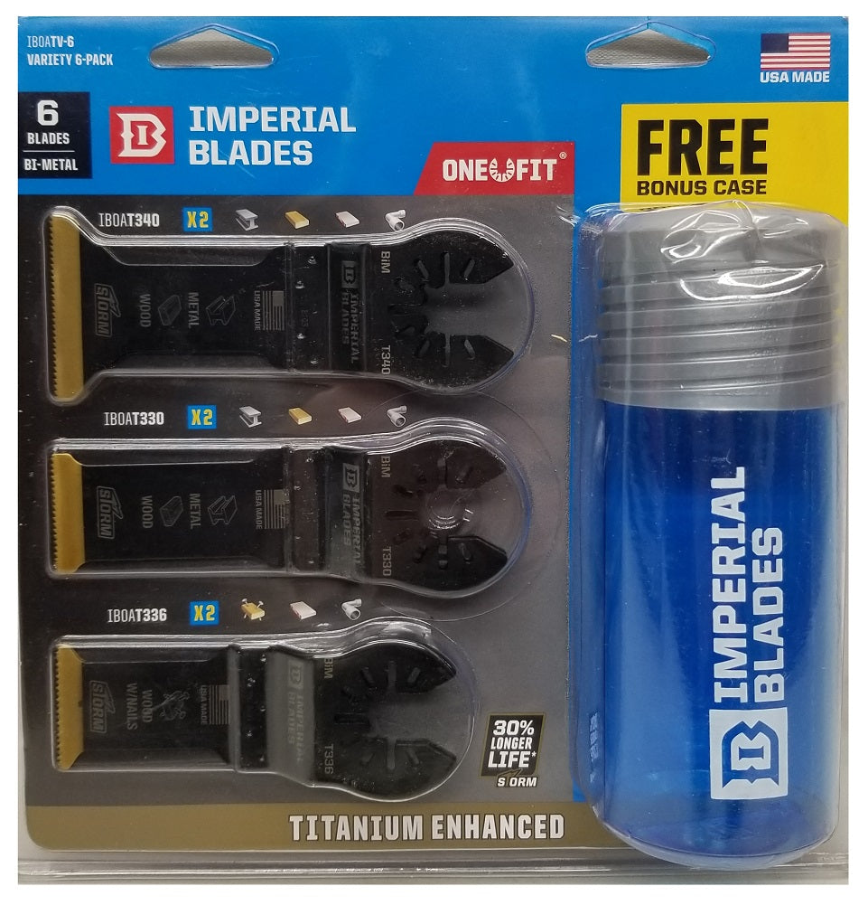 Our newest variety 6-pack of titanium-coated, bi-metal teeth give the blades longer life and comes with a carrying case. The Imperial Blades ONE FIT Bi-Metal Storm Variety Pack with Carrying Case (6-Count) is the most popular blades in North America. These bi-metal blades are optimized for wood, metal and PVC. Our highest quality titanium coated high speed steel blade is...