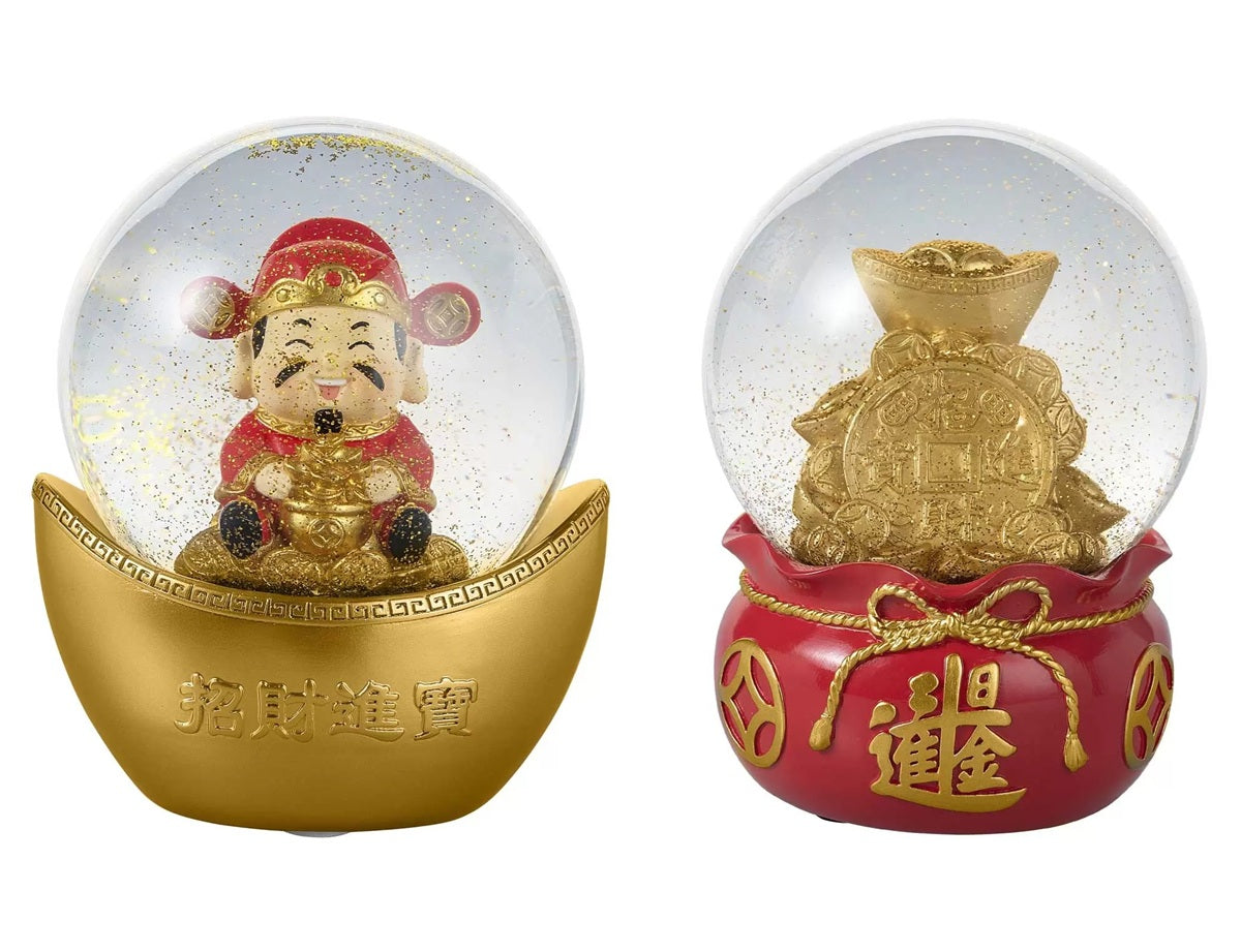 Experience the magic of Lunar New Year with this enchanting set of two water globe decorations, a must have for your new year decoration. Impeccably designed with traditional Lunar New Year elements and adorned with exquisite hand painted details, these decorations promise to bring joy and good fortune to you and your loved ones. Each water globe, filled with shimmering...