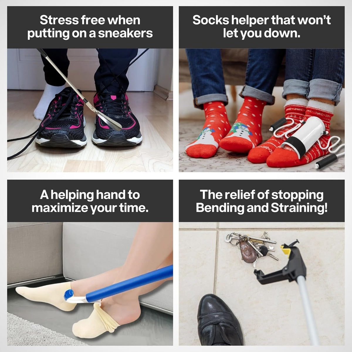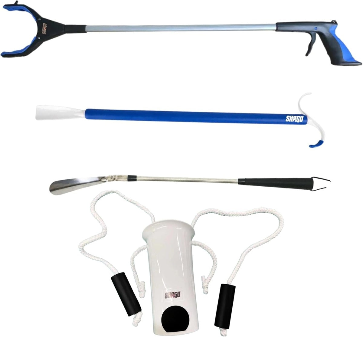 Shagu's 4-piece bundle features a long shoe horn and grabber reacher tool that is the perfect solution for enhanced mobility. Ideal for seniors requiring a shoe horn long handle or a long grabber reacher tool, this kit simplifies daily tasks, promoting independence. Step into your shoes effortlessly with our ergonomic long handle shoe horn, a beacon for those who value...