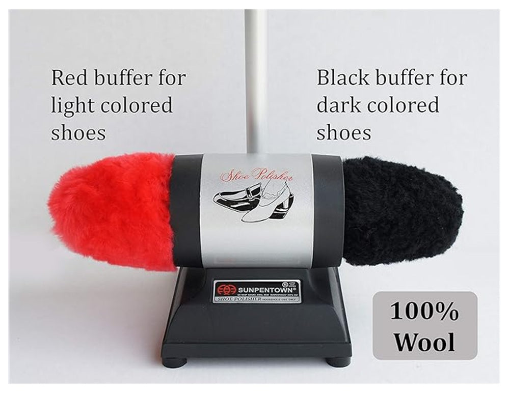 Maintain your favorite pair of leather shoes with ease. The electric standing shoe polishing machine is perfect for a quick and easy polish that gives a magnificent shine. The adjustable stand-up design accommodates all shoe sizes. It features dual-sided buffer padding, and it is a quiet one-touch easy operation. Look your best at all times! Electric shoe polishing machine shines...