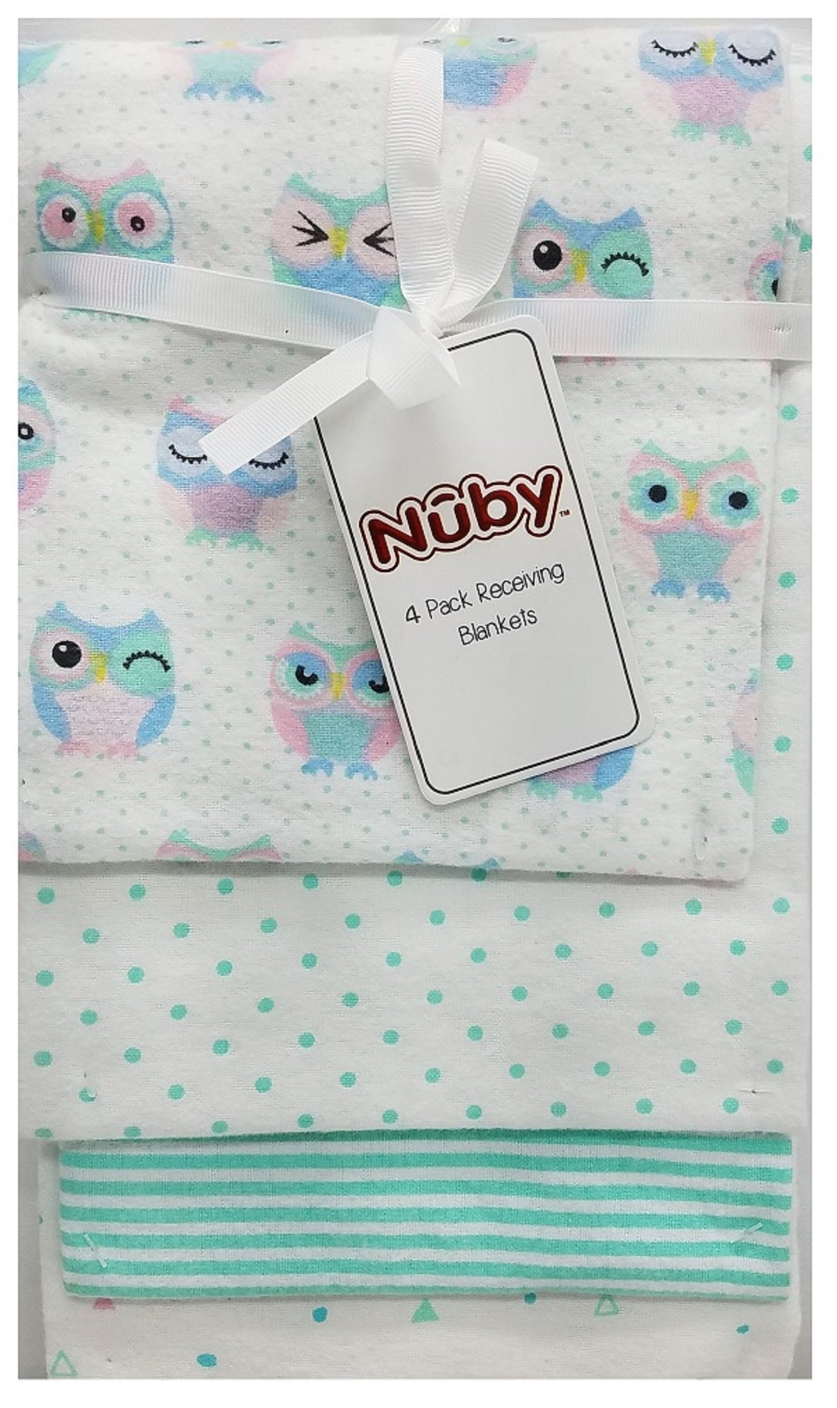 These Nuby 4 Pack Receiving Blankets, Owl Themed, are super soft and cute as can be. The four pack is 100% cotton, super durable and comfortable. Nuby's Cuddly Soft Owl 4-Pack Cotton Receiving Blankets will keep your little one warm and stylish. Also a great gift idea for a friend or family member expecting!! Includes Get (1) white blanket with...