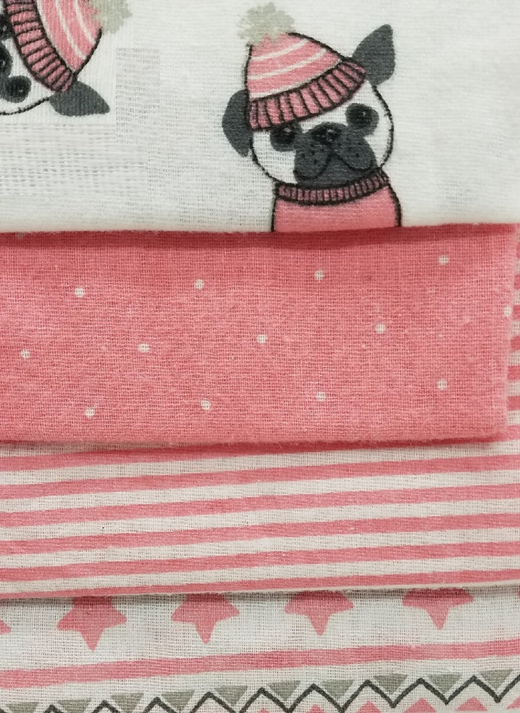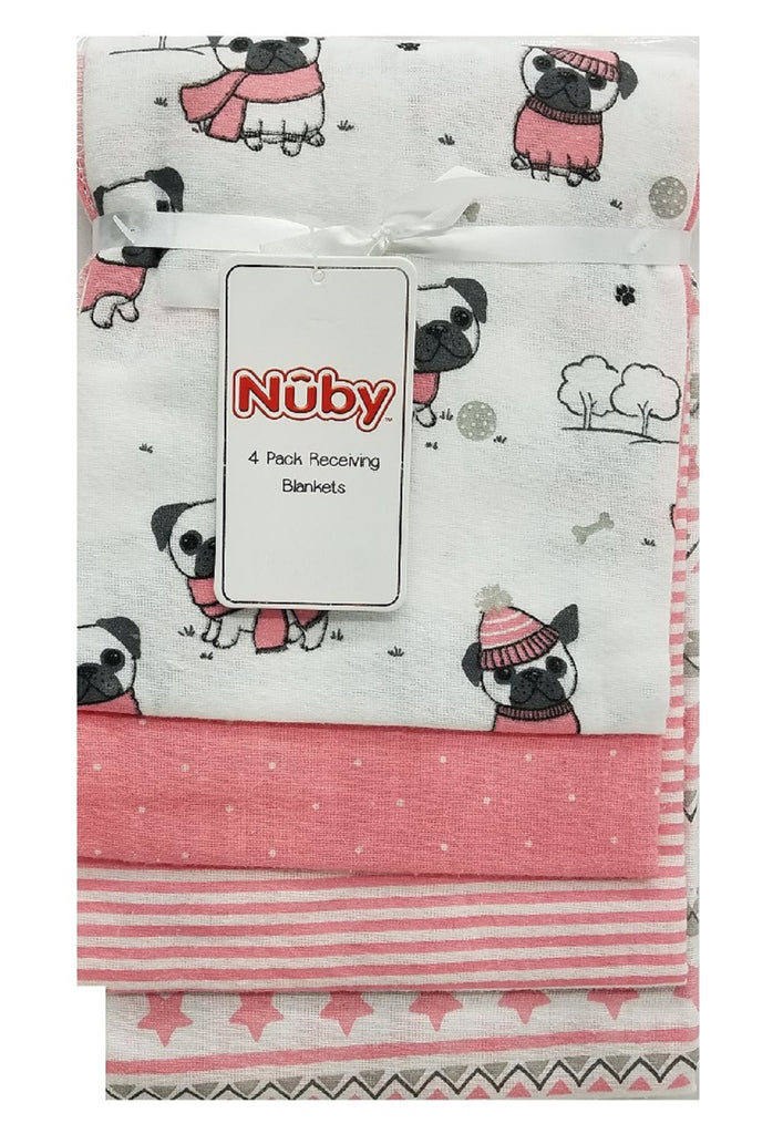 The Nuby 4-Pack Girl Receiving Blanket Gift Set, Pink Pug Themed, are super soft and cute as can be. The four pack is 100% cotton, super durable and comfortable. Nuby's Cuddly Soft Pink Pug 4-Pack Cotton Receiving Blankets will keep your little one warm and stylish. Also a great gift idea for a friend or family member expecting!! Perfect size...