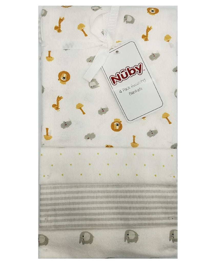 The Nuby 4-Pack Neutral Receiving Blankets Gift Set, Zoo Theme, are super soft and cute as can be. The four pack is 100% cotton, super adorable and comfortable. Nuby's Cuddly Soft Zoo 4-Pack Cotton Receiving Blankets will keep your little one warm and stylish. Also a great gift idea for a friend or family member expecting!! Includes Get (1) white...