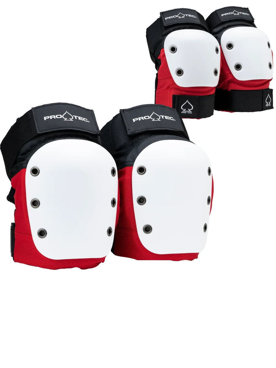 Get protected with the Pro-Tec Street Elbow/Knee Pad Combo Pack Red, White, Black Large. The Pro-Tec sets the industry standard for innovative protective gear. Using durable fabrics, impact absorbing foams, and full-coverage hard caps to provide maximum protection without restricting movement. Molded protective caps with neoprene stretch panels. Abrasion resistant nylon construction. Hook and loop closure system (no need to...