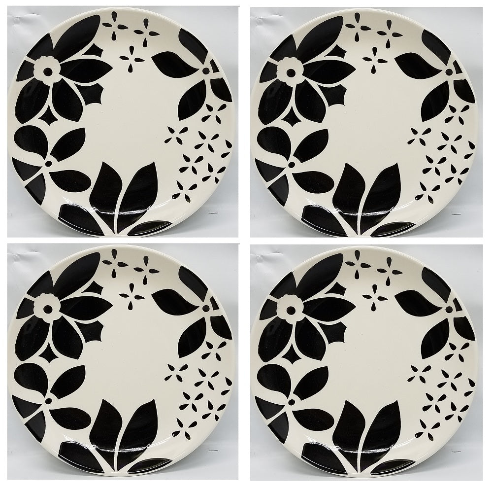 Tabletops Unlimited ALYSON 8" Round Salad Plate White with Black (4-Pack) features a smooth edge, brilliant scrolling and crafty geometric designs. This round salad plate is dishwasher and microwave safe. Features a white with black Geometric Floral Design salad plate. Salad Plate: 8" Round