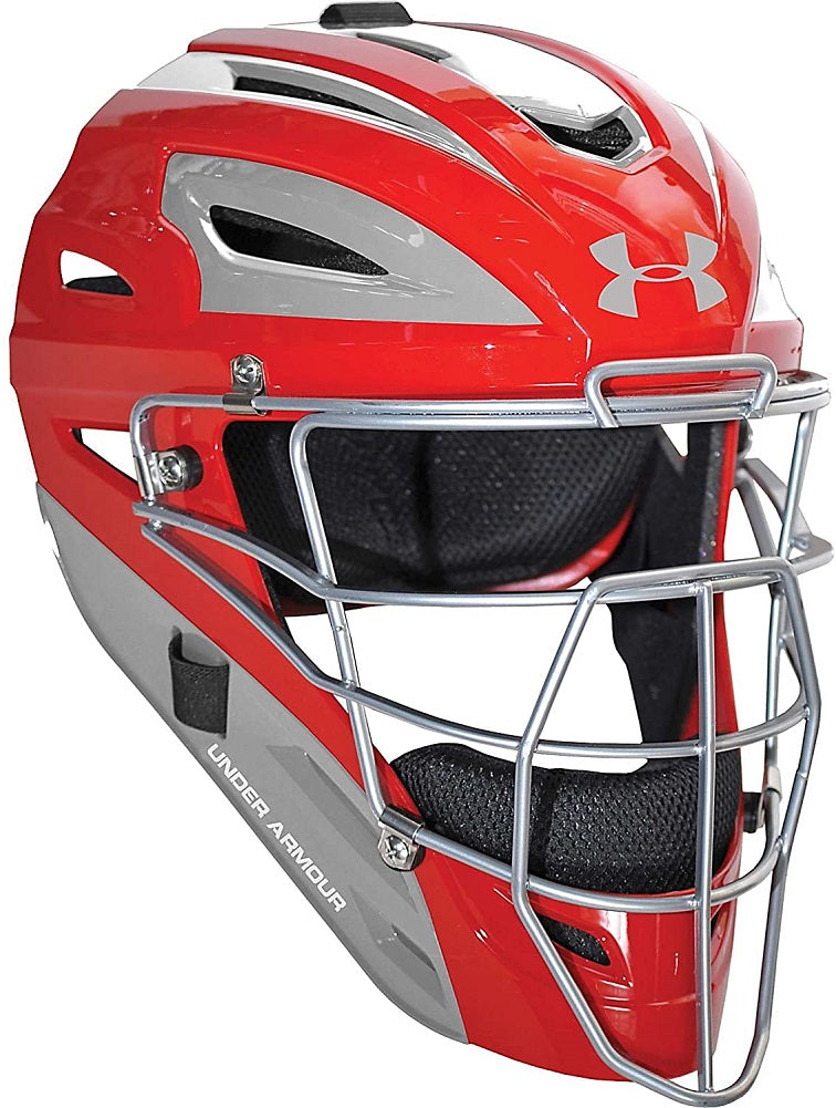 Not just another catcher's helmet, the Under Armour Youth Pro Two-Tone Catchers Helmet Scarlet (Age 7-12) features an eye-catching two-tone design and a performance enhancing cage that is thin, yet lightweight and strong. Features injection molded ABS shell. I-Bar Vision cage increases vision and cage strength. Soft fabric covers inner chin pad. Sleek design deflects balls. AEGIS Microbe Shield kills...