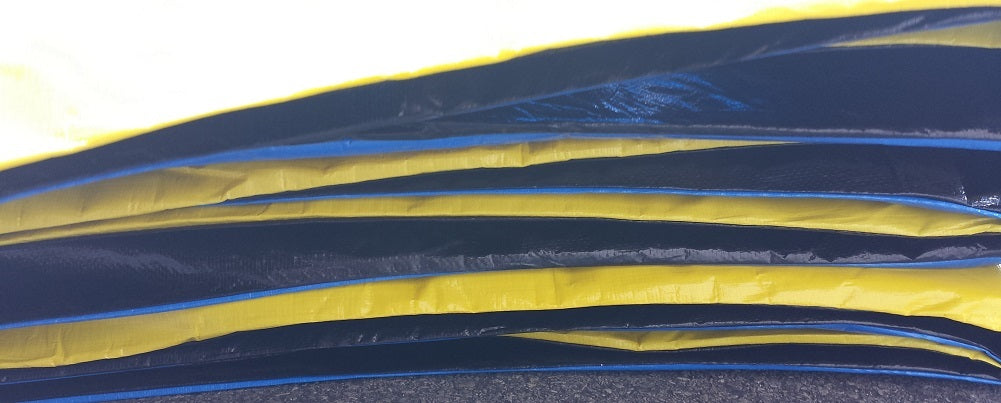 The Bounce Pro 12' Round Replacement Spring Pad, Blue & Yellow, is a great way to update your trampoline and keep our family safe. The Spring Pad is made of durable vinyl. The Spring alternates between blue and yellow. It is made with 3/4" Thick foam, 12 oz. vinyl, Total: 12" wide: 9" Spring Cover with a 3" skirt to...