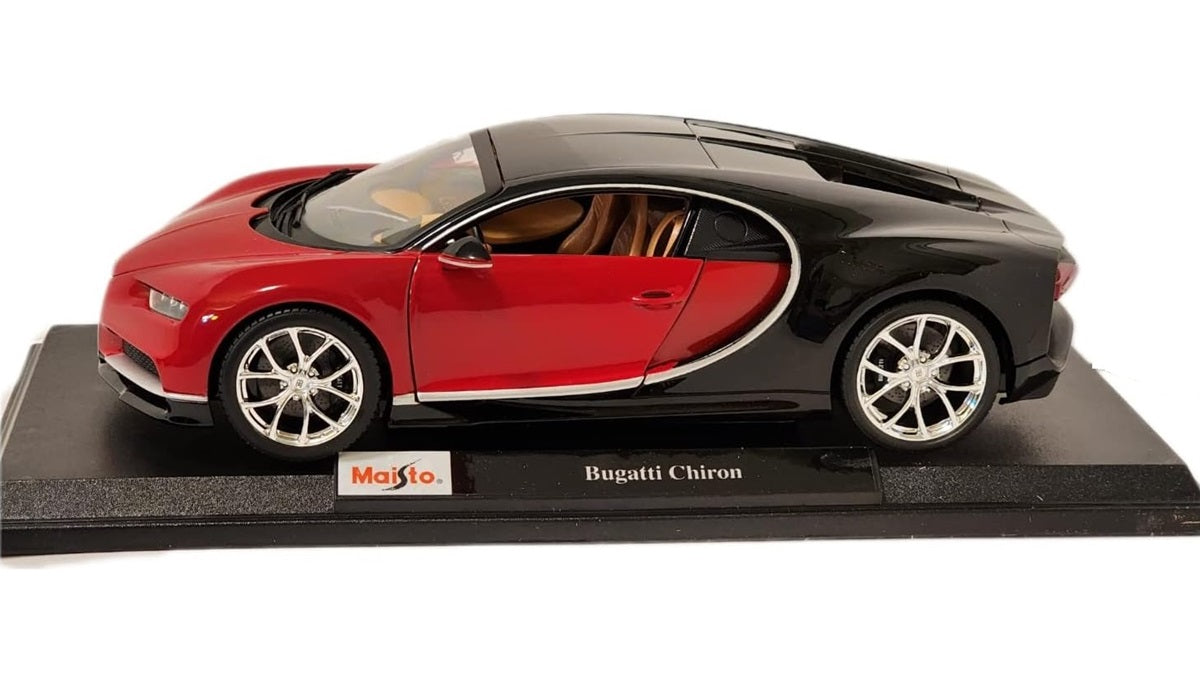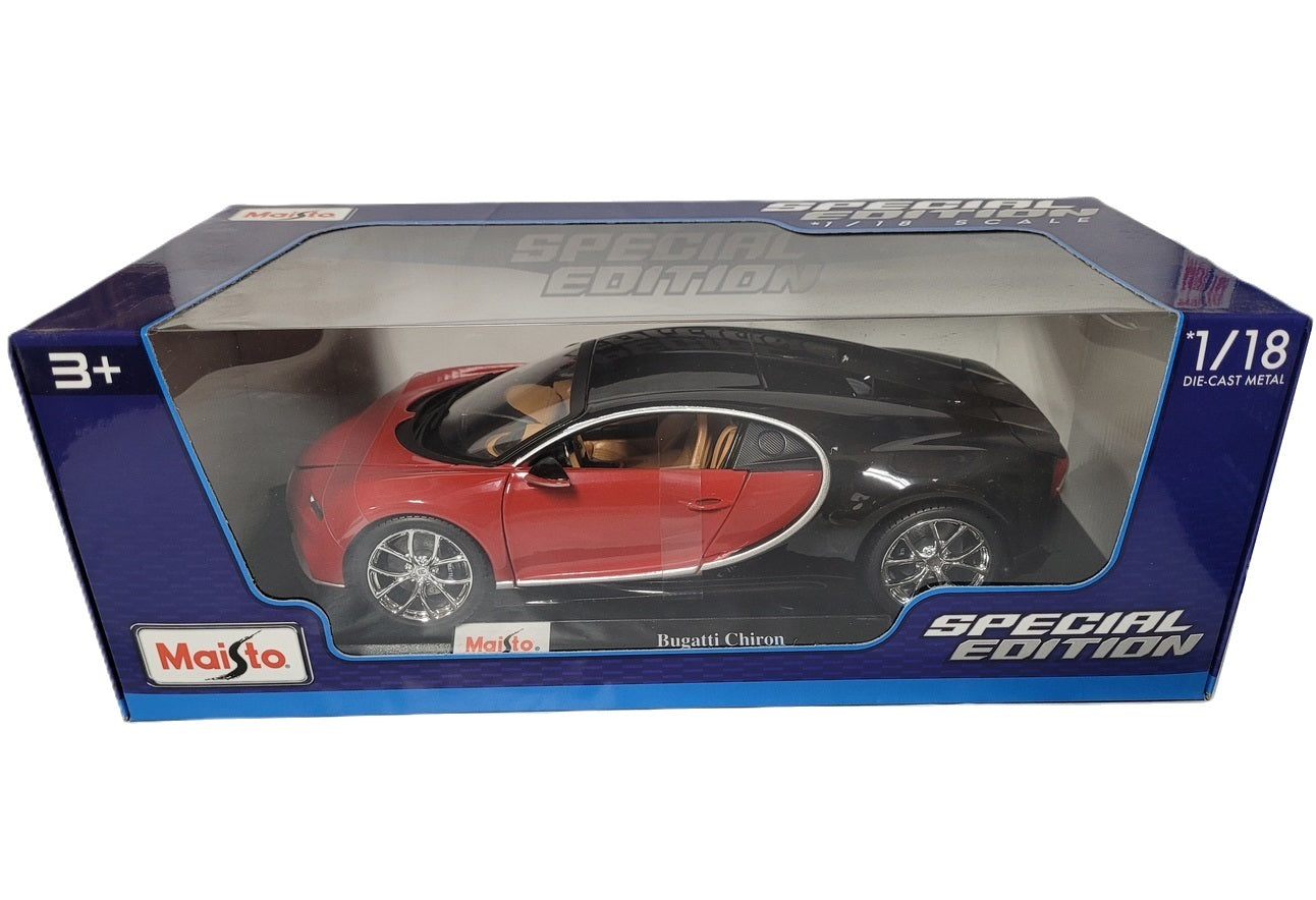 The Maisto Special Edition 2022 Bugatti Chiron Black and Red 1:18 Diecast Model Car is a detailed die-cast model. Large Approx. 9-1/2" Replica with die-cast metal body with plastic parts. Opening doors and engine compartment. Full function steering with four-wheel suspension. Adjustable seat backs on some models. Detailed chassis with separate exhaust system. Mounted on plastic stand. 1/18 Die-cast metal....