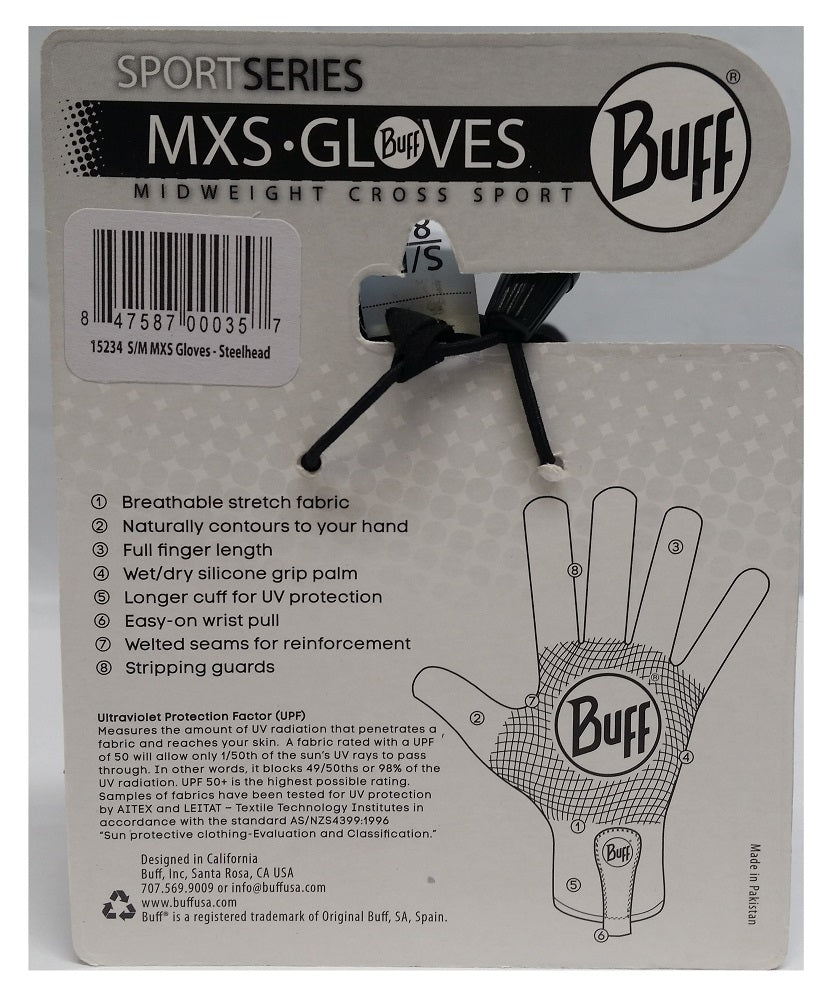 Buff Sports MXS Gloves Midweight Cross Sport Steelhead, XS/S
