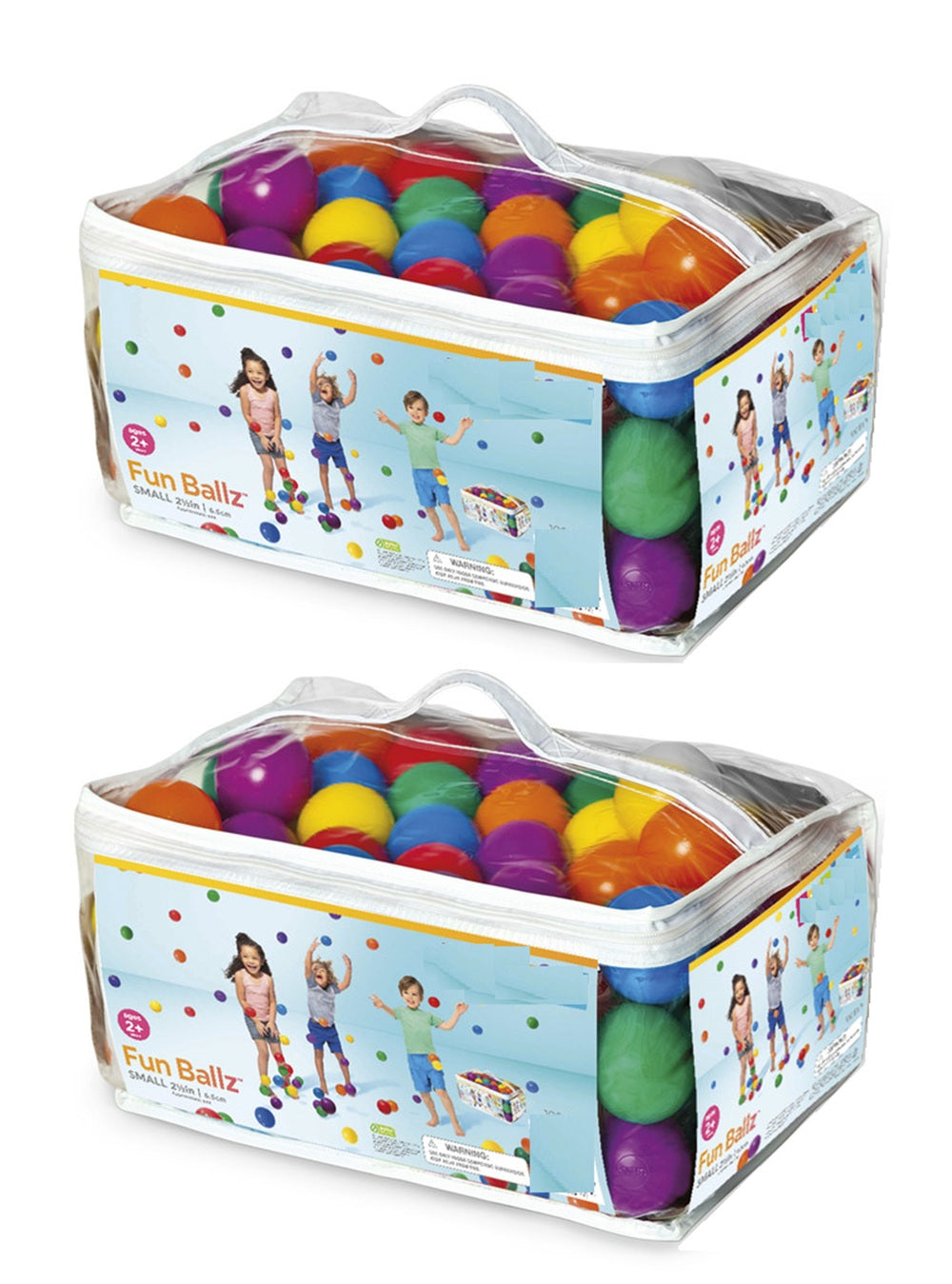 Great for play centers, pools, ball pits, and so much more, the Small Fun Ballz 2-Pack is a 100 pack bag full of fun! These 2 1/2 inch air filled balls come in 6 bright colors including red, yellow, blue, orange, green, and purple. The package also works as a carry bag which is great for storing and transporting the...