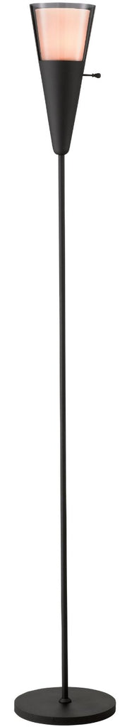 The Adesso 3278-01 Beacon Floor Lamp features a woven fabric cord that matches the lamp color. The shades are powder coated metal at the socket end with smoked acrylic on the open end lined with a white acrylic inner shade. The stick pole and base are powder coated metal to match the respective shade. On/off rotary switch on shade. Takes...