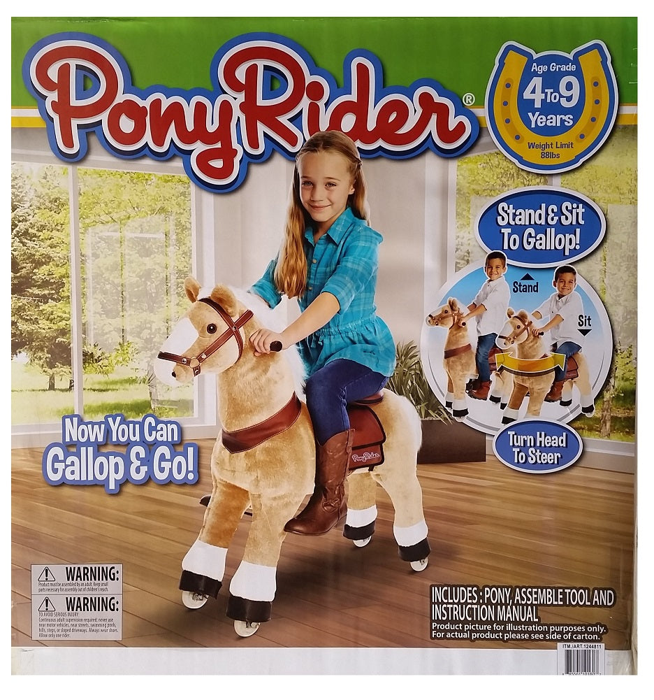 Every child imagines owning and riding their very own pony and now they can bring their dreams to life with the PonyRider. The PonyRider Plush Ride-On Toy Pony with Gallop and Go Action, Light Brown is a classic play pattern and “Gallop and Go” motion, this plush ride-on toy allows young cowpokes to not only sit and rock, but actually...