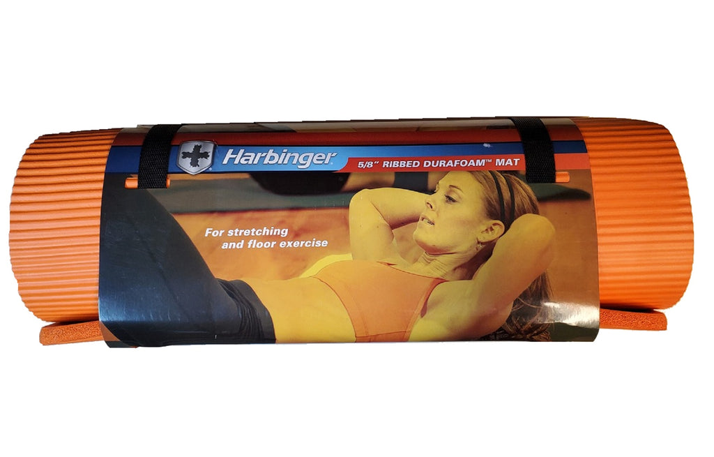 Harbinger 5/8-inch Ribbed Durafoam Mat Orange is convenient and versatile. It is a great way to keep up with your exercises while you are on the go. Non-skid ridges prevent the mat from slipping. An integrated strap makes it easy to carry, so you have no problems doing your yoga, Pilates, stretching or floor exercises wherever it is most convenient....