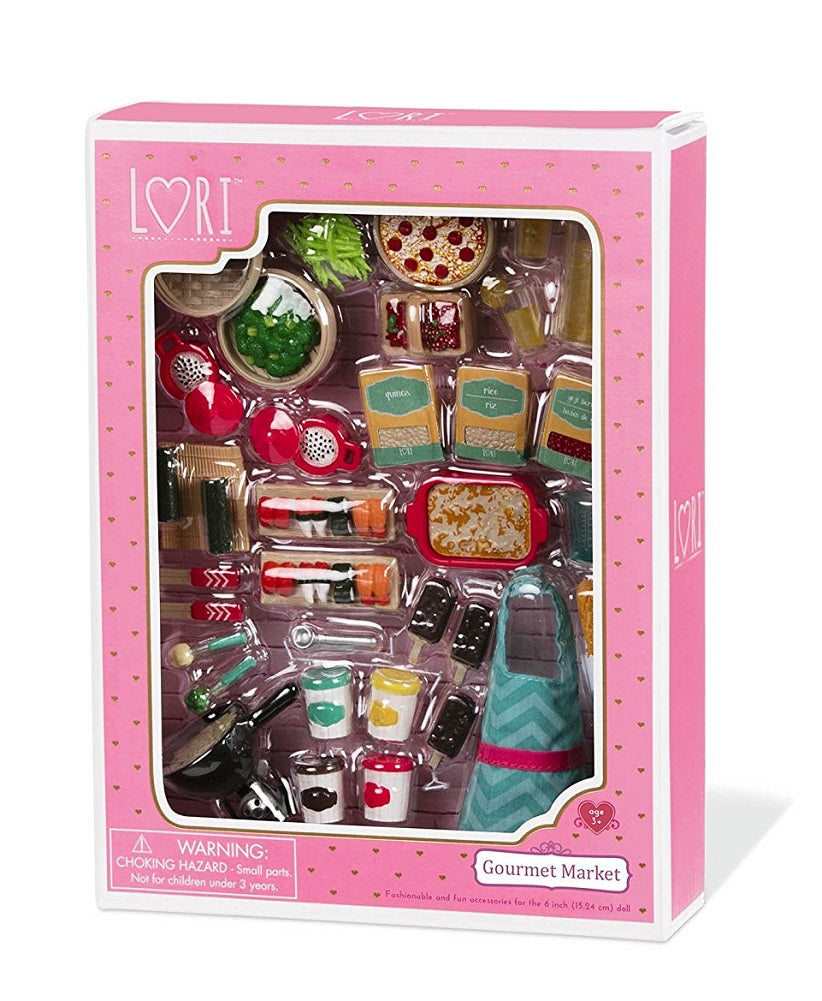 Come hang out with Lori and all of her smart, adventurous, and trendy friends. They love ballet, reading, giggling, and playing with their pets.Lori Doll Accessory - 40-piece Gourmet Market for 6" Dolls comes with one bamboo steamer, one cluster of broccoli, one cluster of green beans, one tray of lasagna, one pizza, one pizza slice and one tray, two...