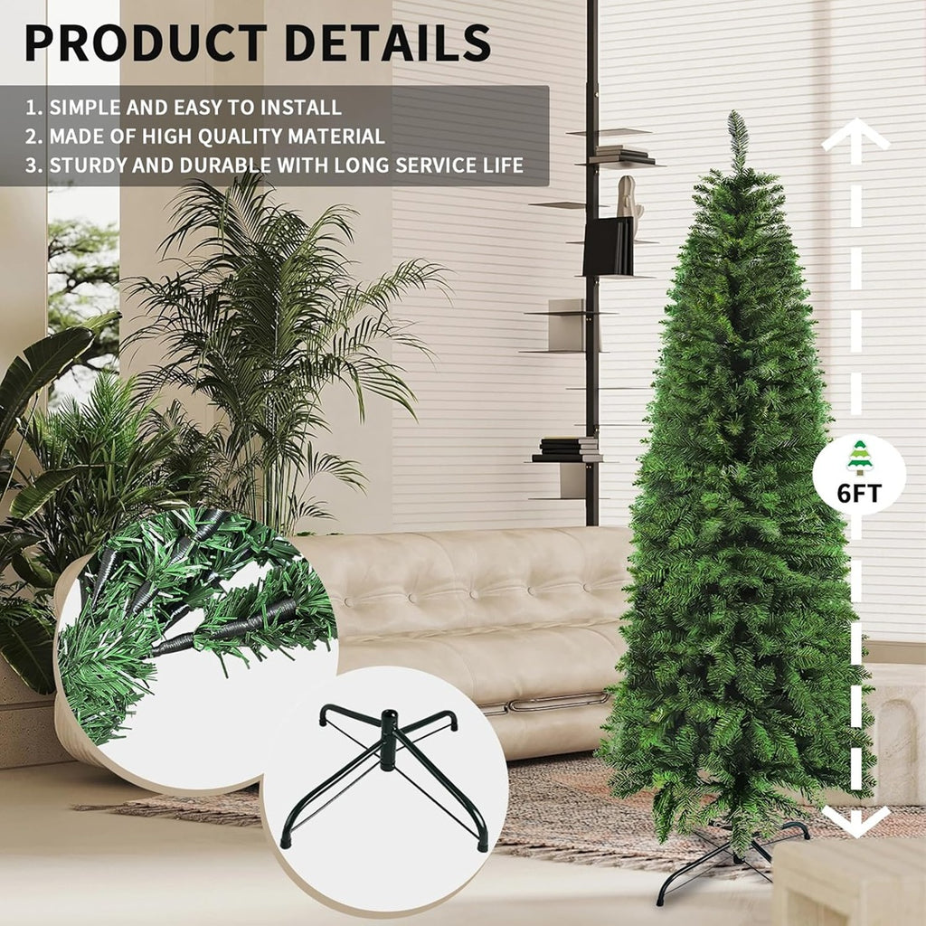 Add elegance to any room with the MuRealy 6ft Pencil Slim Artificial Christmas Tree with Metal Stand. The MuRealy Christmas tree is designed as a slim pencil, which is unique and space-saving. Thanks to its delicate body, the artificial tree is perfect for display in corners, small rooms, and areas with limited floor space, adding more excitement and originality to...