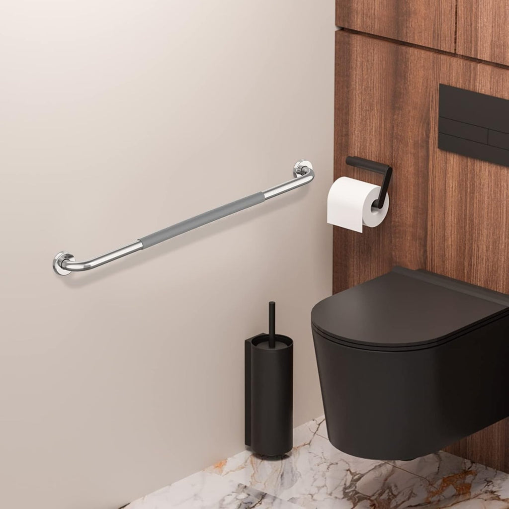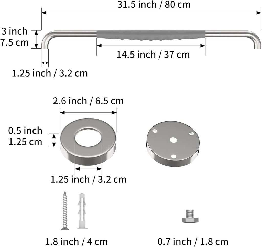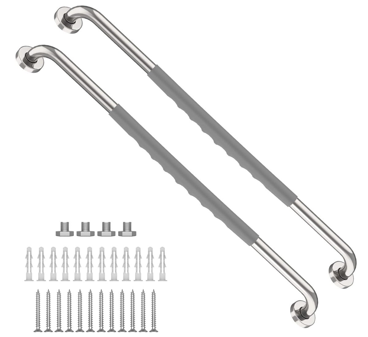 MUNZONG 32in Chrome Shower Grab Bar w/ Gray Anti-Slip Rubber Grip 2-Pack the non slip knurled surface on middle is superior for safety when you have soapy hands and need to steady yourself. Munzong 36 inch knurled surface bathroom shower grab bars 1.25 inch diameter are able to support up to 500 lbs of pull force to provide a stable,...