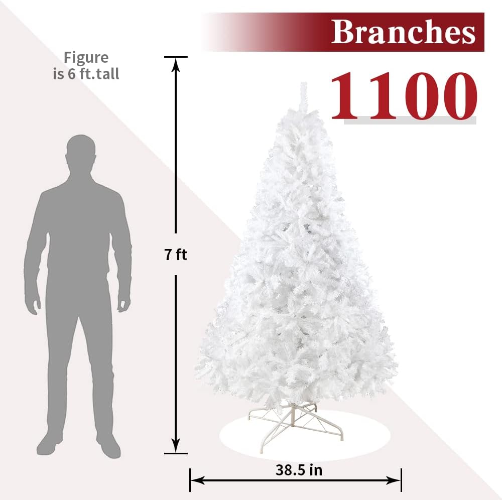 Get into the holiday spirit with 7' White Artificial Christmas Tree and decorate your home with holiday cheer. This Christmas tree is an ideal choice for outdoor and indoor decoration. Easy-to-fluff branches are covered in 1100 tips to create the natural appearance of a full-bodied, genuine Spruce tree, this hinged Christmas tree will be an eye-catching centerpiece to any room...