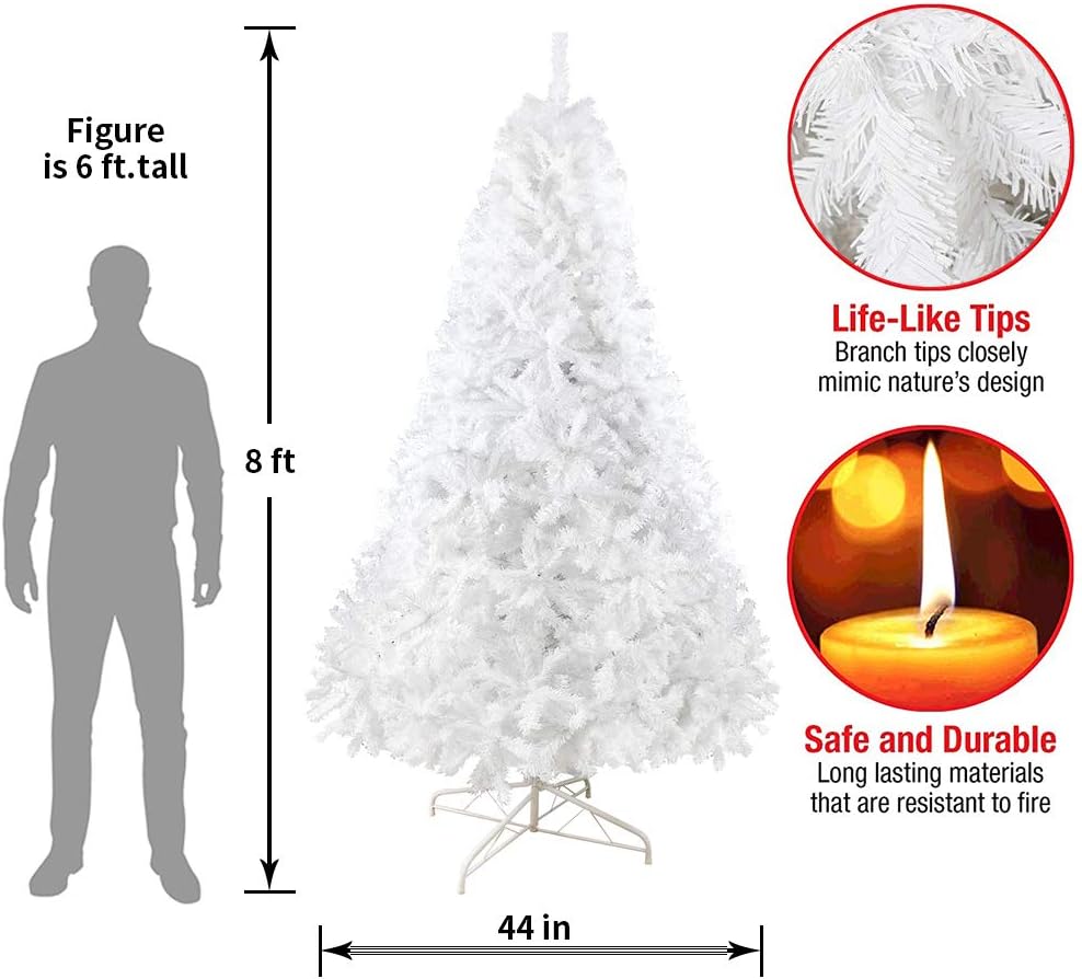 This 8-foot indoor Christmas tree stands tall and is equipped with 1500 sturdy branches tips. It is simple to assemble as well as disassemble with a hinged composition. Please store the Christmas tree in a cool dry place away from sunlight after disassembly. Life-like artificial Christmas tree with a full and fluffy look from any angle in your decorated places....