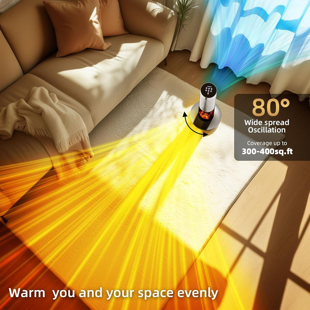 The 1500W Electric Space Heater with Fireplace Heaters Indoor Portable with ECO Mode with a "warm" realistic 3D flame, it makes the room feel cozier and comfortable, creating an atmosphere for gatherings. You can have the heat and fireplace lights on together or separately. It looks so relaxing when lights on as a nightlight which gives a nice effect to a dark room. The electric heater is built with a child-lock, tip-over protection, V0 flame retardant material, overheat protection, and a safety plug. It provides robust safety protections for your family, enhancing safety for children, reduces the risk of accidents, making safer to heat and more secure to use. Bring warm air to every corner of your room. Can easily cover areas of 200-300 sq ft. The space heater combines exposed temperature sensor, manually adjustable thermostat, and highly efficient all-aluminum heating element. These smart features ensure optimal warmth by adapting to the size of your room and maintaining the perfect temperature. With precise control over heat output, you can enjoy comfortable heating while saving up to 40% on energy costs. Set room temperature with more accuracy than ever before, this space heater with thermostat uses a dedicated thermal sensor, temperature can be set between 45-86 degree F with 1 degrees F precision for ideal comfort, you can enjoy comfortable heating.