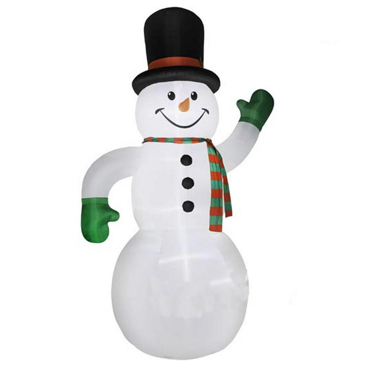 Become to center of attention in your neighborhood and welcome holiday guests to your home with this 20-ft. Snowman Inflatable. This giant friend adorns winter wear in green and red to perfectly match your other exterior decor. It lights up with long-lasting LEDs and the durable fabric will last you year after year, so you can always enjoy your favorite snowman. Oxford fabric material is sturdy enough for outdoor use. Energy-efficient LEDs keep your outdoor space illuminated. Measures 20 ft. H x 11.81 ft. W when fully inflated. Plugs into a standard outlet for reliable power. Self-inflating design with included stakes and tethers ensures simple set-up. Weighs 13.58 lbs. Includes one air-blown snowman Christmas inflatable with stakes and tethers.