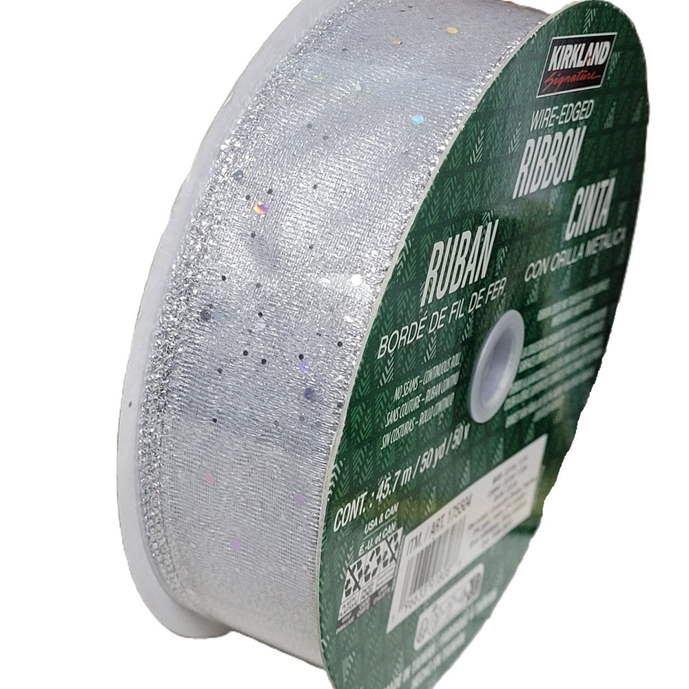 This beautiful spool of ribbon will create beautiful bows for your Christmas gifts or to adorn your Christmas tree, mantle or stairway. This Premium Stylish Holiday Ribbon has been carefully selected from Kirkland signature. The Kirkland Signature Wire Edged Silver Metallic Ribbon 50 yards x 1.5 inches is beautiful from its high-quality to its finish-stitched edges. Made from the finest...