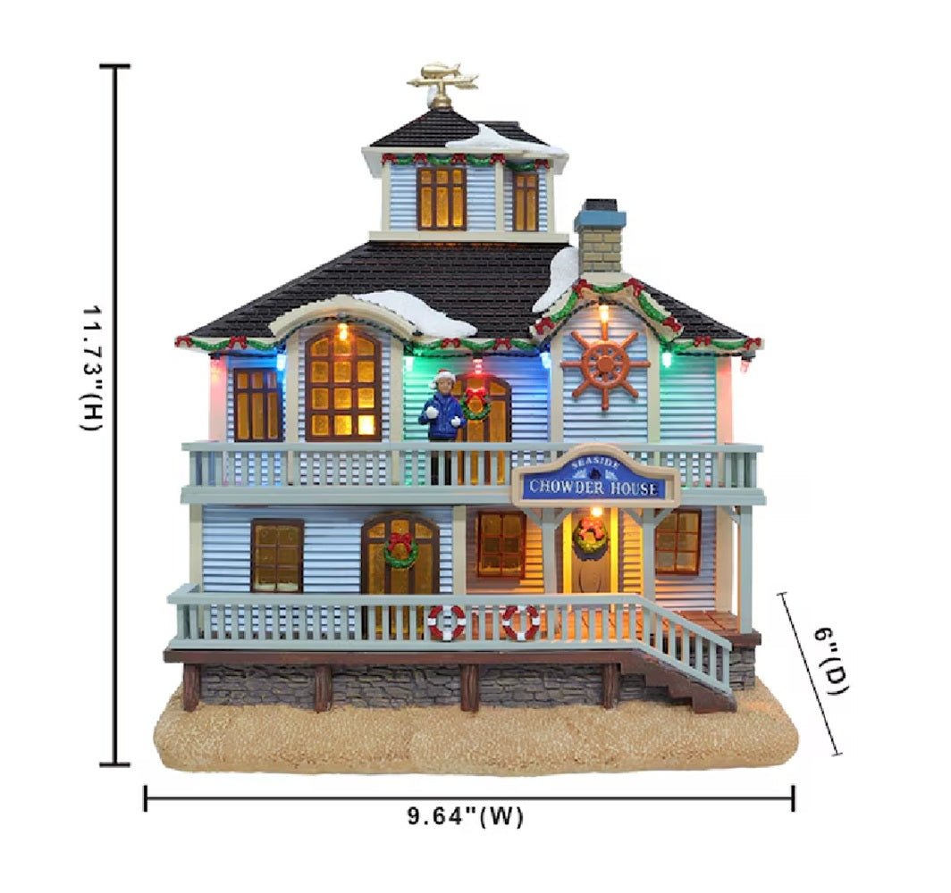 Cara's Chowder House opened more than 100 years ago along the Carole Towne shore. For anyone who's ever eaten there, the restaurant's staying power is no surprise. Cara's offers the most delicious clam chowder, plus lobster rolls, steamed mussels, oysters and fresh catches daily. The restaurant's biggest event of the year is the annual Christmas Eve Seafood Feast, which attracts hundreds of people from Carole Towne and beyond. Perfect to add to the Carole Towne Collection or any other holiday village. Corded to light with LED. The material is resin. It is not a toy, for indoor use and decoration only. Released in 2024. Dimensions: 9.64"L X 6"W X 11.73"H
