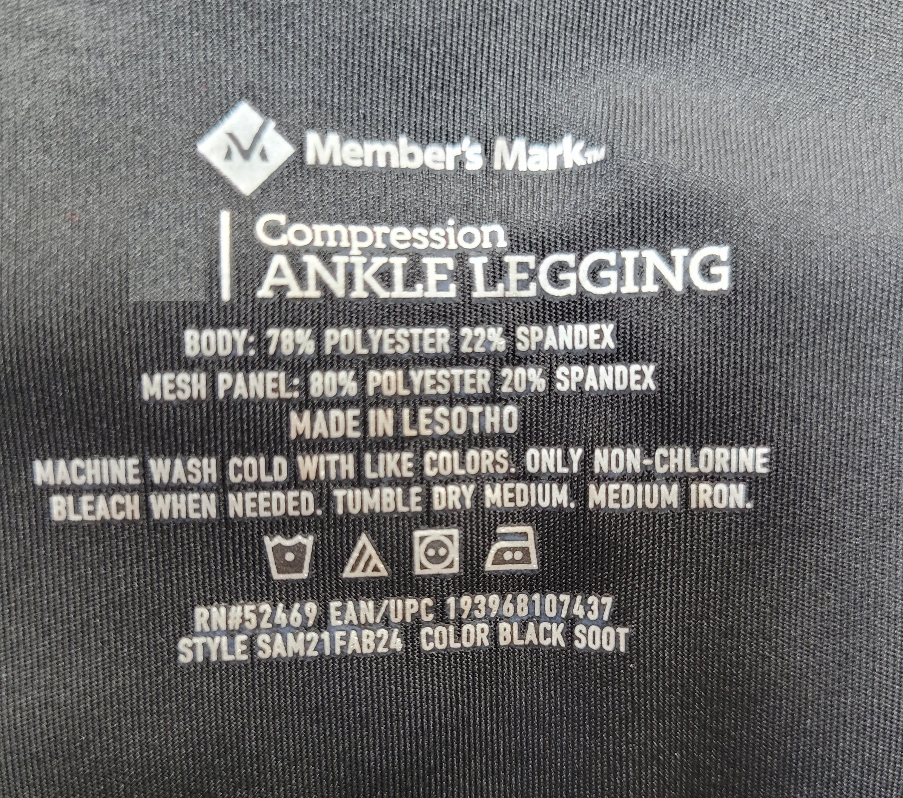 The Member's Mark Compression Athletic Ankle Leggings with Pockets XX-LARGE Black and Grey Heather 2-Pack is the perfect workout legging to keep you fresh during exercise. The compression fit keeps your body fabulously in shape. Curved mesh piecing adds an elegant touch while providing target ventilation. The side pockets on both sides gives you the space you need to store your essential belongings. It's a perfect combination of style and function all together. Made from polyester and spandex. Machine washable and tumble dry.