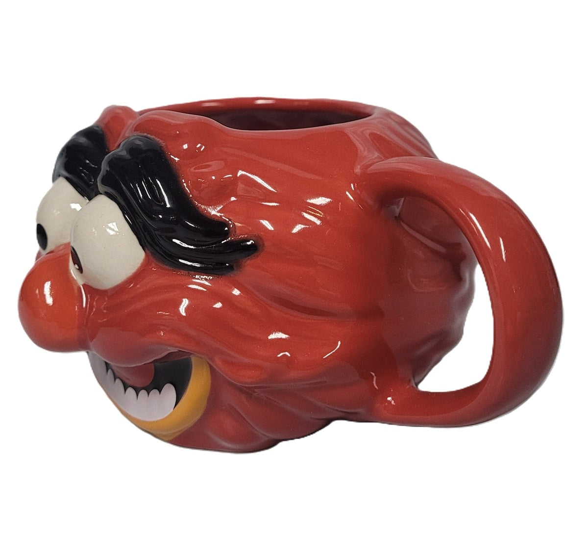 Wake up and go wild each morning with a sip of savage confidence from Animal's sculpted ceramic mug. The red Animal Mug is a fully sculpted ceramic mug with gloss glaze. Designed for hot beverages. Inspired by The Muppet Show. Wash thoroughly before first use. Microwave and dishwasher safe. Stoneware. Approx. 3.26in H x 4.48in Diameter (not including handle). Holds 16 oz.