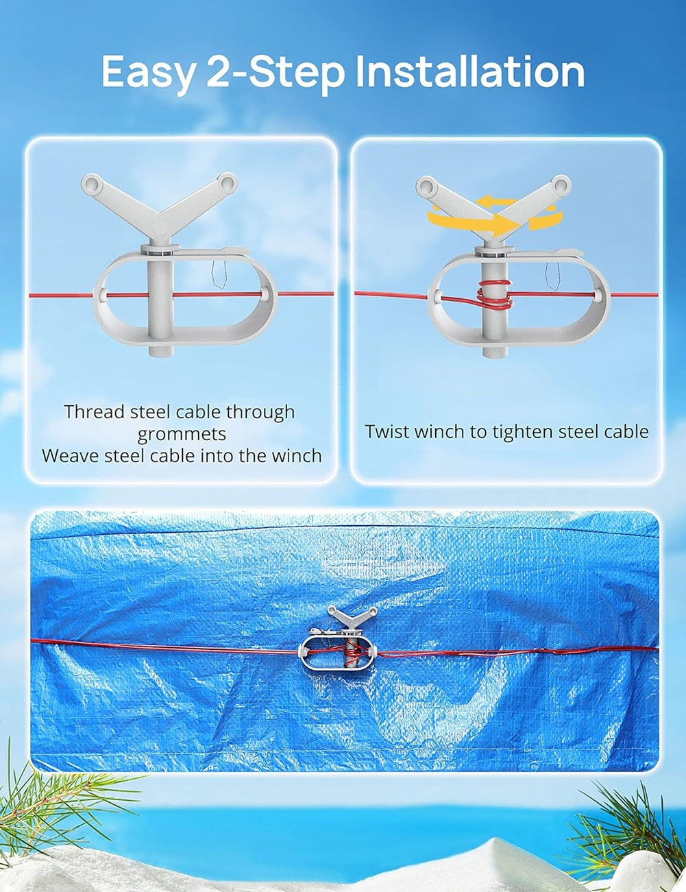 - Featuring a robust winch and vinyl-coated steel cable, the 28ft EVAJOY pool cover secures with ease onto the outer rim of your pool via rip-proof grommets in just minutes.