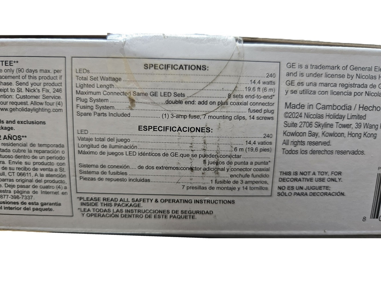 The GE StayBright 19.6 ft Cool Bright 240-Count LED Tape Light Bright White is a perfect addition to your holiday decor. With the StayBright Tape, you can outline doorways, windows, roof line, deck and home with Christmas cheer. The Glow Bright LED Tape Light has 240 LED energy-efficient lights that emit a neon glow in bright white. It's flexible, easy to mold into shapes and designs, and can be connected to multiple sets to enhance your holiday decor. Each tape light includes a 24 in. lead. Product Details: GE LED tape light. 240-Count, bright white LED lights. 19.6-Feet lighted length, white cord set. Can connect up to 8 sets. For indoor or outdoor use.