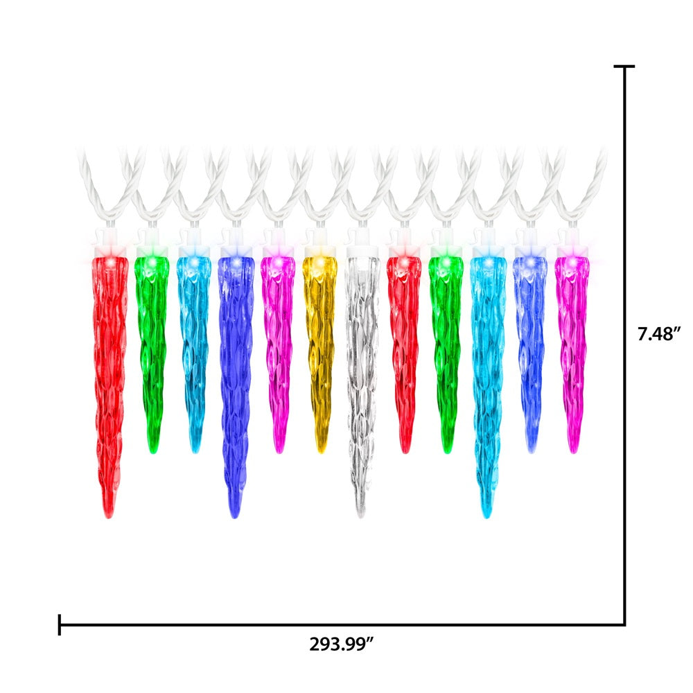 • Deluxe set of 24 multicolor LED icicle bulbs in graduated (7-in 7-in 5-in) sizes