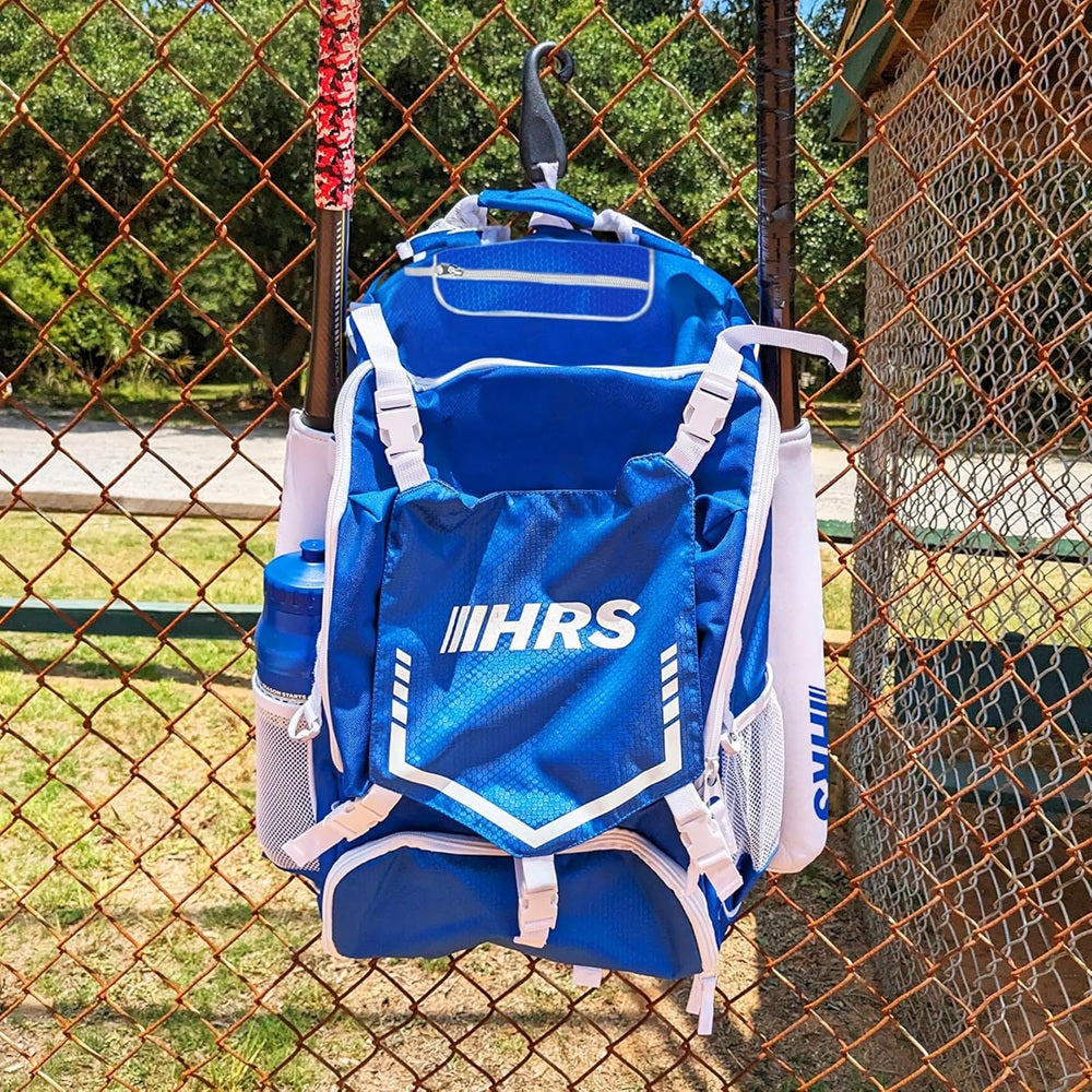 Hit Run Steal baseball and softball utility bat backpack is a specialized bag designed to hold and transport baseball or softball equipment, including bats, gloves, baseballs, softballs and other essentials for the game or practice. Hit Run Steal backpacks are used from beginners to professional players of all levels. The backpack features compartments for storing baseball or softballs, bats securely, gloves and more equipment. Bat compartments are designed with flexible neoprene sleeves and mesh with flexible straps. Allows players to easily access their bats without having to remove the backpack. Made of durable materials, such as nylon and polyester and can withstand the wear and tear of regular, everyday use. Designed to provide comfort and support for the players, with padded shoulder straps and airflow back panel that helps distribute the weight across the back. Hit Run Steal baseball bat backpack is a convenient and practical accessory for any softball or baseball player who needs to transport their equipment on a regular basis. It allows players to keep their gear organized and easily accessible, while also providing comfort and protection for their equipment during transit. Color: Royal Blue