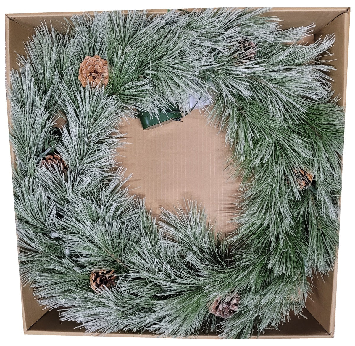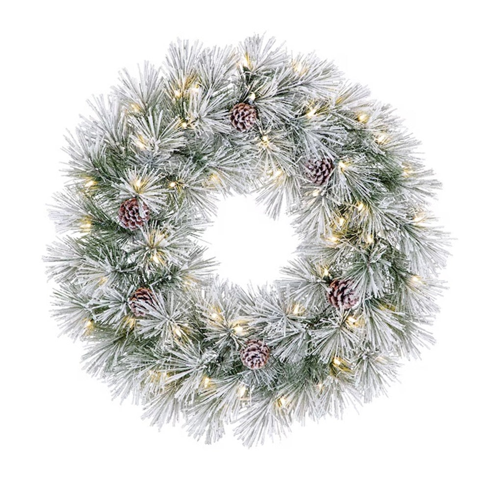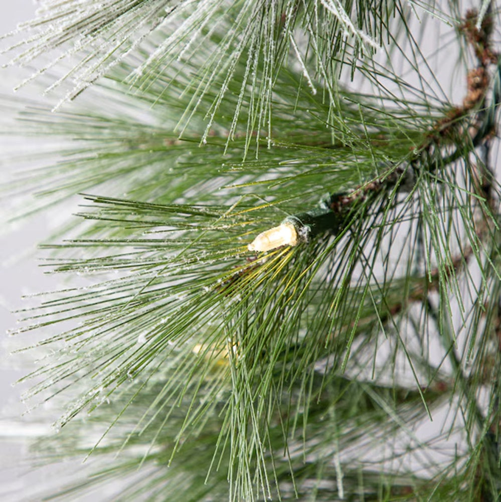 GE 7.5-foot flocked Candlewood pine artificial Christmas tree pre-lit with 600 Color Choice LED 7-mm color changing lights, 80 of the 600 lights have a G-50 cap. Use the foot pedal to choose multicolor lights, warm white lights, or light show settings. Easy Light Technology eliminates tangled cords between tree sections. Includes tree top connector. 2023 Branch needles, mixed needle...