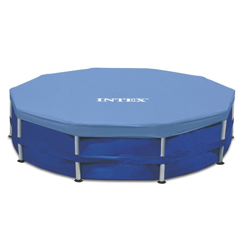 Intex krystal clear round metal frame cover. Round cover with 10" overhang. Easy to use. Makes a snug fit over the edge of the pool. Fits 15" diameter pools. Drain holes to prevent water accumulation