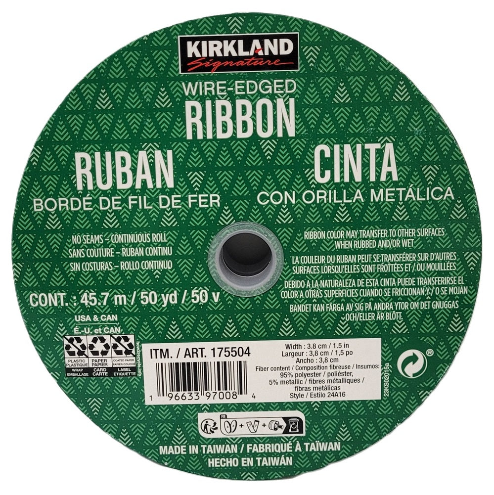 The Kirkland Wire Edged Navy Blue with Silver Sparkles Ribbon 50 yards X 1.5 inches is beautiful spool of ribbon will create beautiful bows for your Christmas gifts or to adorn your Christmas tree, mantle or stairway. This Premium Stylish Holiday Ribbon has been carefully selected from Kirkland Signature. This navy and silver ribbon is beautiful with its high-quality, finish-stitched silver edges. Made from the fine polyester and metallic fabric, this ribbon is finely woven and lasts long. Kirkland Signature ribbon is wire-edged perfect for crafts, gift packaging, and more. 1.5-inch width X 50 yards length. Color navy and silver dots ribbon wired-edge.