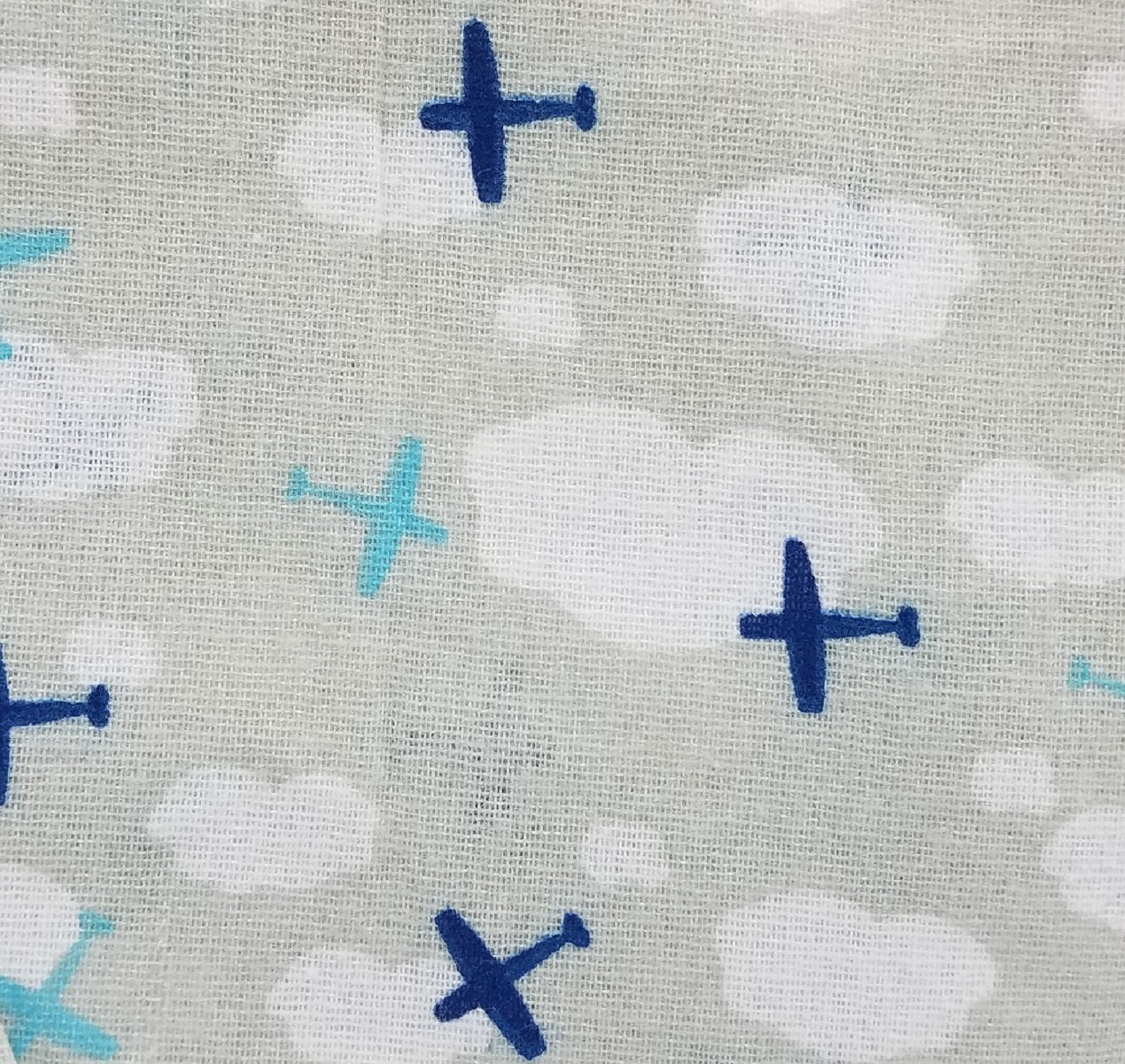 The Nuby 4-Pack Receiving Blankets Gift Set, Airplane Theme, are super soft and cute as can be. The four pack is 100% cotton, super durable and comfortable. Nuby's Cuddly Soft Blue Plane 4-Pack Cotton Receiving Blankets will keep your little one warm and stylish. Also a great gift idea for a friend or family member expecting!! Perfect size for swaddling or burping your baby. Includes: Nuby 4-Pack Boy Receiving Blankets Gift Set, Airplane Theme. (1) Gray blanket with navy and light blue planes on white clouds, (1) white blanket with Navy and blue moons, stars and dots, (1) light blue and white stripe blanket, and (1) white blanket with light blue clouds. 100% cotton. Machine wash and dry. Each measures 28" W x 28" L.