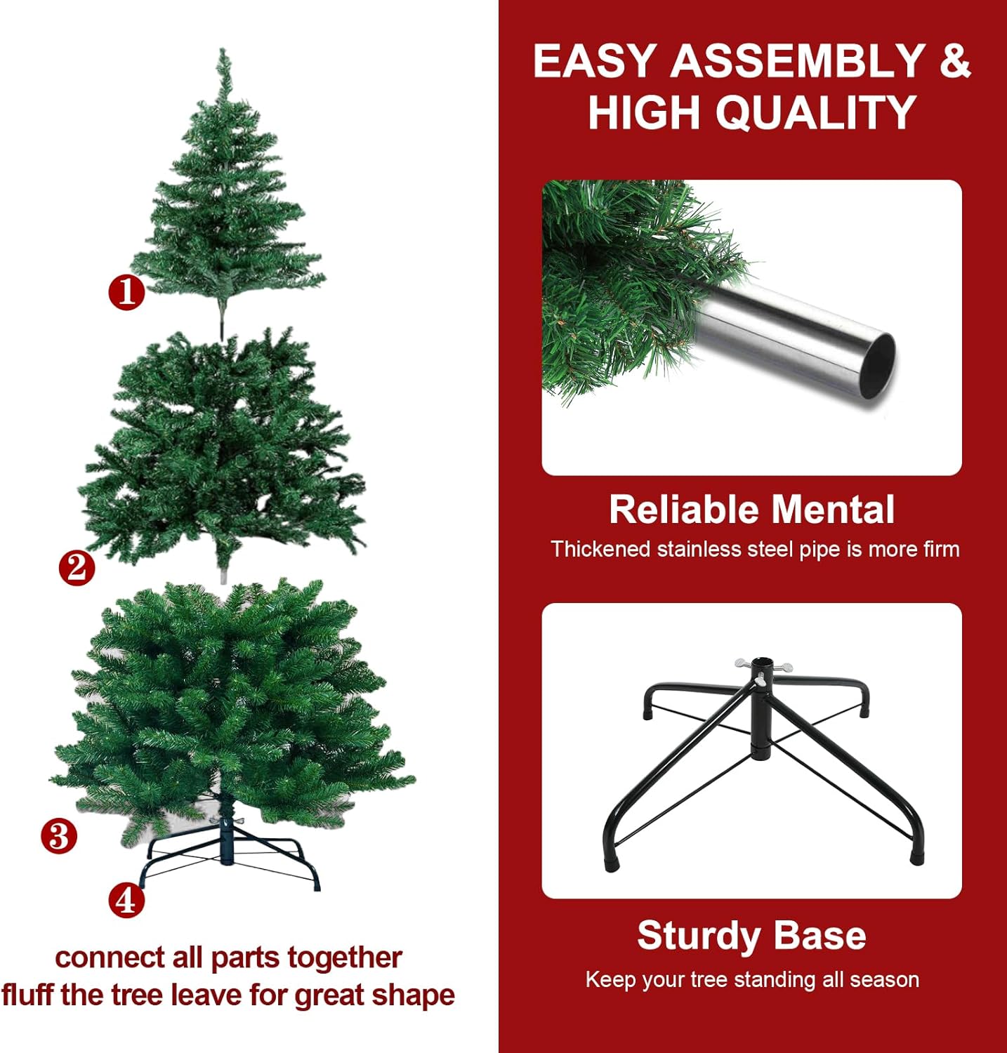 This 10-foot indoor Christmas tree stands tall and is equipped with 2150 sturdy branches tips. It is simple to assemble as well as disassemble with a hinged composition. Please store the Christmas tree in a cool dry place away from sunlight after disassembly. Life-like artificial Christmas tree with a full and fluffy look from any angle in your decorated places. The green and thick finish of branch tips enhanced the natural leafy vibe of this decorative holiday tree. The artificial holiday Christmas tree is made of premium PVC material that is eco-friendly, non-flammable and durable for a long service life. Includes a folding metal base to provide stronger support and stability. Simple and realistic pine tree design that gives your home a bit of nature's feel, which also creates a warm ambiance and elegant style. It comes with ornaments for a customized look and you can decorate the tree with your family and friends. Perfect for indoor and outdoor.
